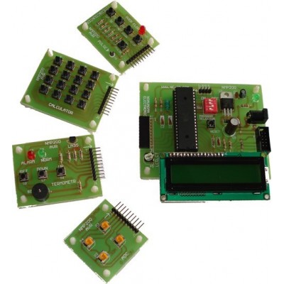 مدار به صورت پنج برد مدار چاپی جداگانه طراحی گردیده که یکی از آنها (برد بزرگتر) برد اصلی می باشدو چهار برد دیگر متناسب با هریک از پروژه ها به برد اصلی متصل می شوند.